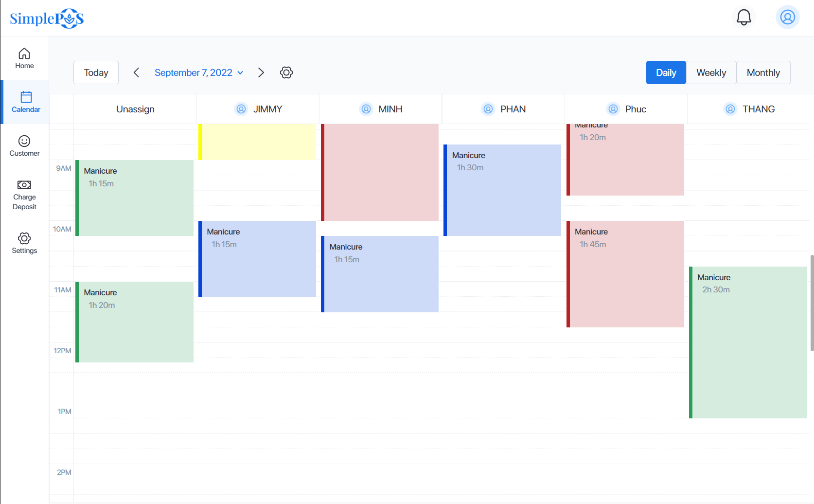 With clever design and integration with the POS system, you can make an appointment for your client within seconds. The system also help to keep track of customer booking records for reference.