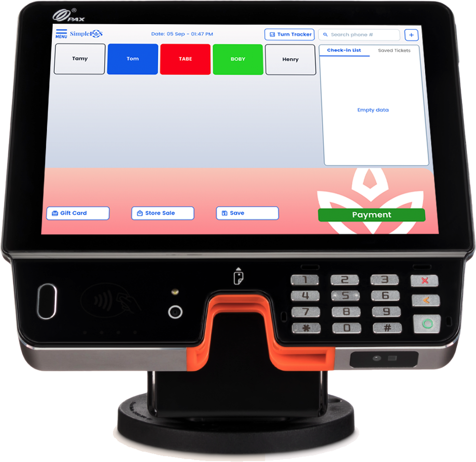 Simple POS is a complete solution system with the most needs solutions for your day-to-day operation at the salon: point of Sale system, Payroll, Tip calculation, Turn Tracker, Gift Card Management, Customer Management, and Promotion. The system is designed to be self-explanatory and easy to use. Within 5 minutes, you can learn or train a person to use the system efficiently